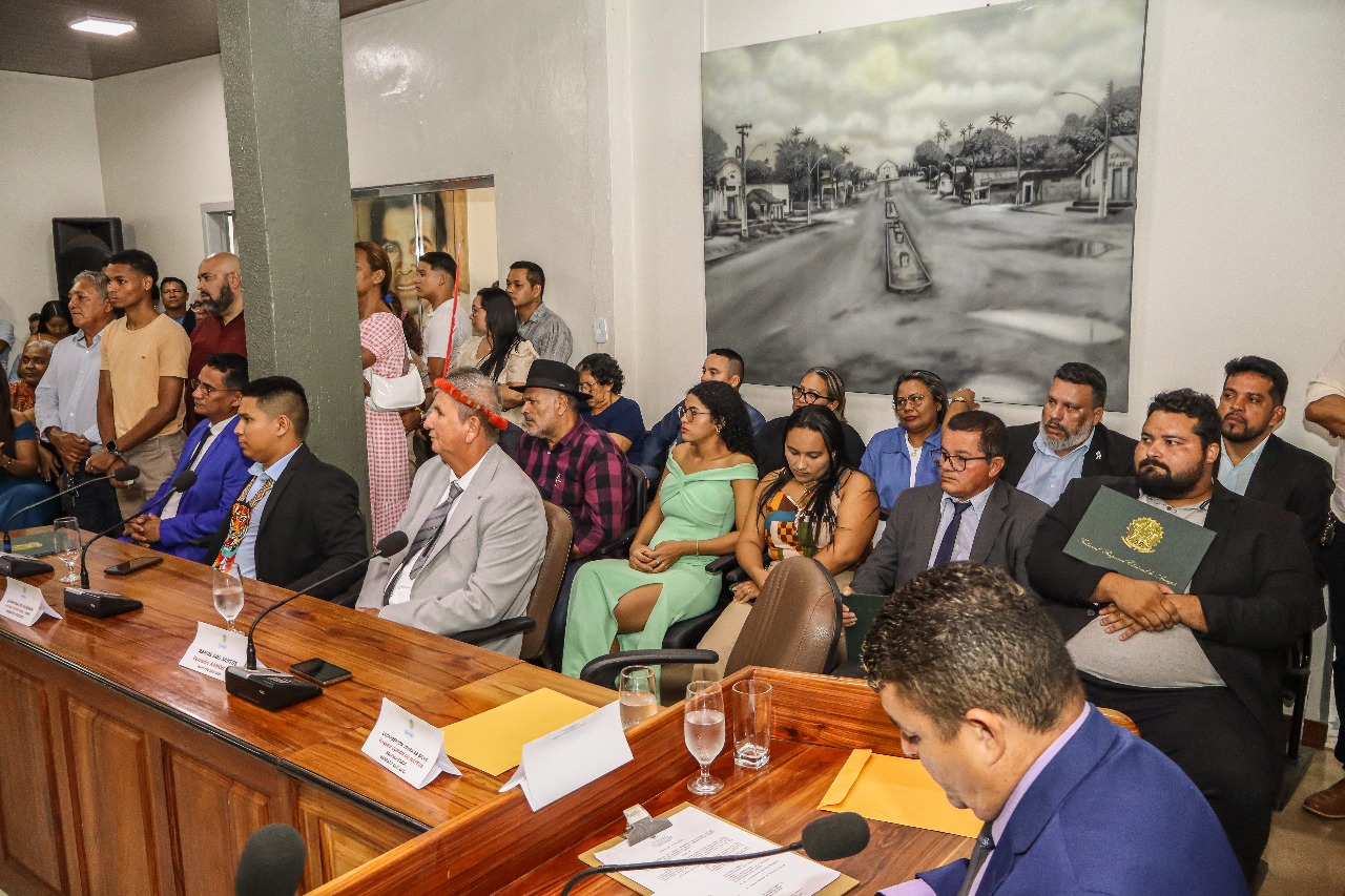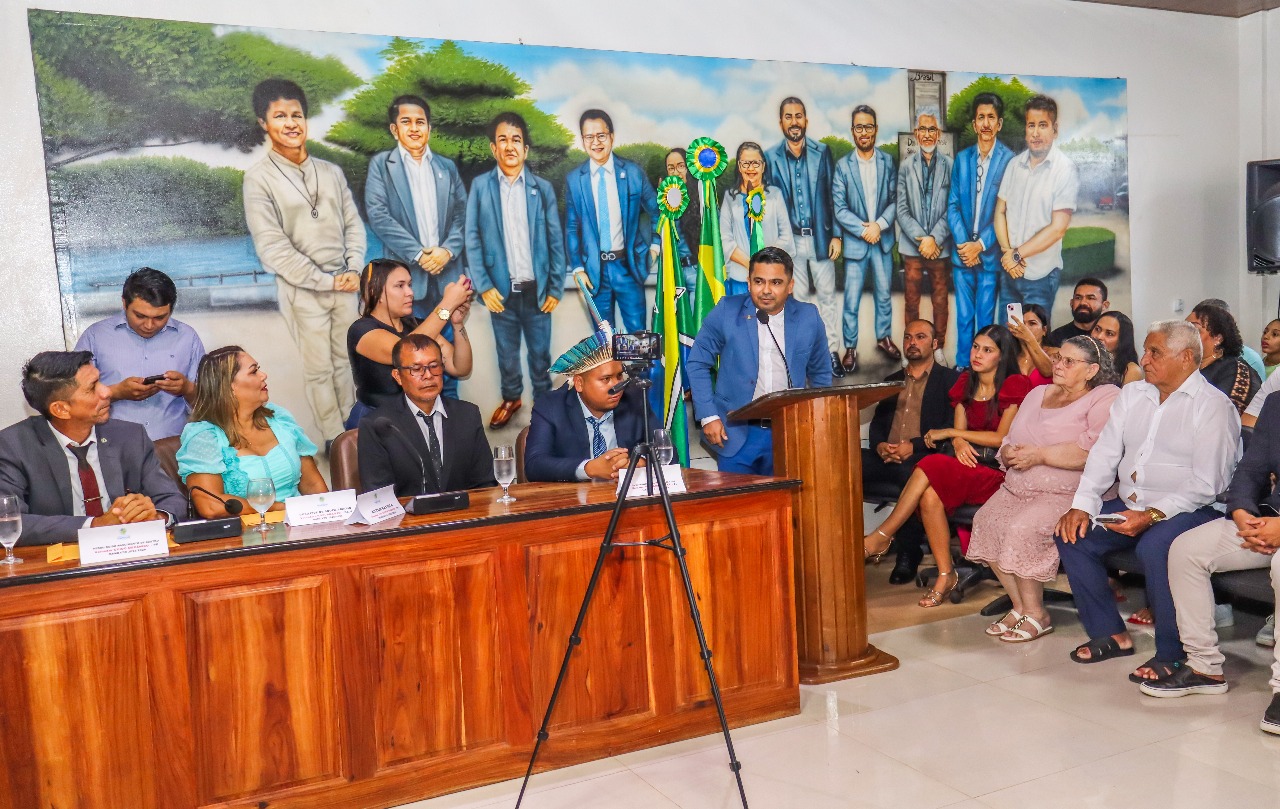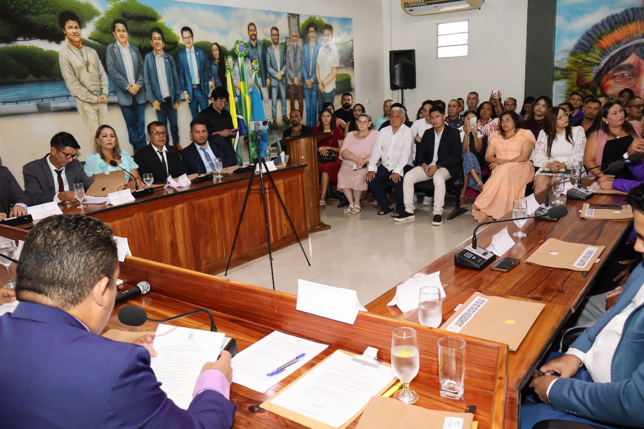 O evento de posse ocorreu na Câmara Municipal dos Vereadores