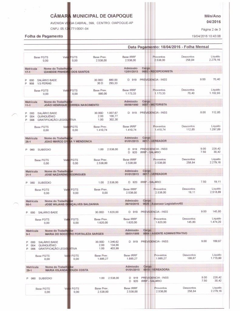 Folha de Pagamento 2016