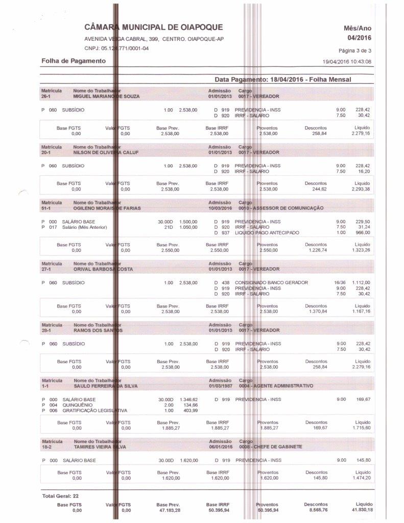 Folha de Pagamento 2016