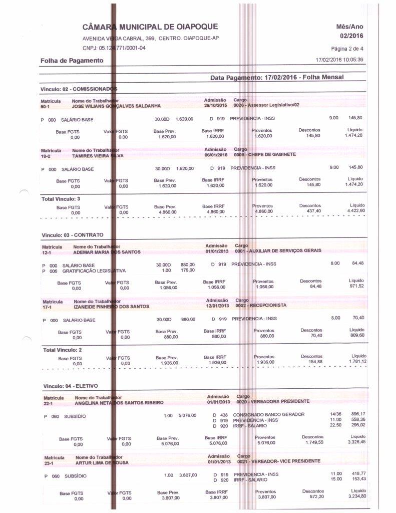 Folha de Pagamento 2016