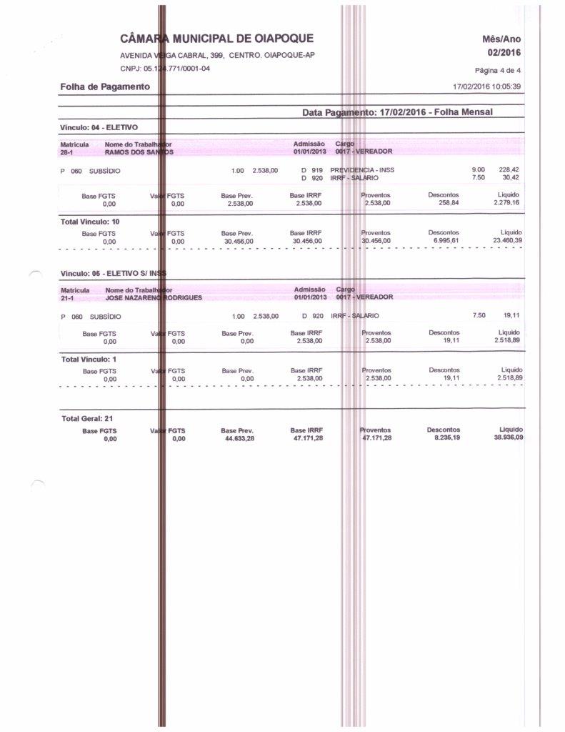 Folha de Pagamento 2016