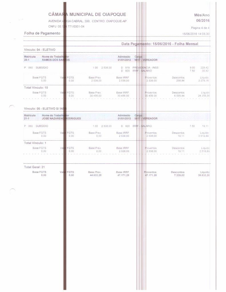 Folha de Pagamento 2016